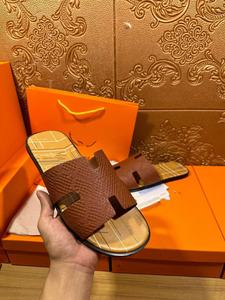 2025 夏の新スタイル本革メンズスリッパフラットアウトドア英国サンダルパーソナライズされたファッションレザースリッパメンズスリッパ