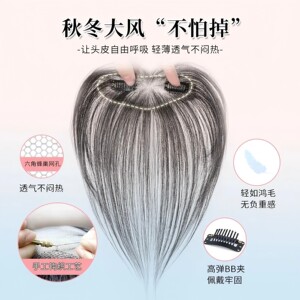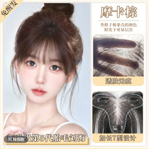 女性用胎児毛カール前髪ウィッグ、頭頂部フル人毛、自然な額とサイド、跡のないヘアライン、偽前髪