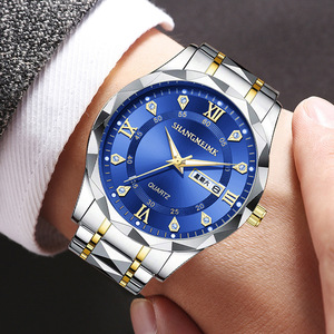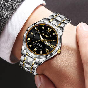 クロスボーダーホットセールメンズウォッチデジタルダイヤルラインストーンカレンダークォーツ時計菱形スチールバンドカジュアルクリエイティブ腕時計