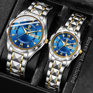 シルバーとゴールドの時計ストラップ ブルーフェイス スタイル 3 (大 + 小)