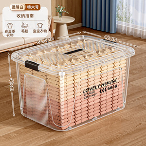 プラスチック透明収納ボックス家庭用大容量厚みのある衣類キルト収納ボックス防塵蓋付き寝室収納ボックス