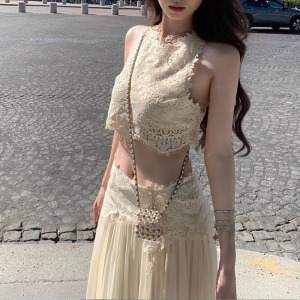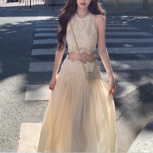 2025 夏の新ルーブルファンタジーエレガントで甘い絶妙なまつげレーストップ + ロングスカートスーツ女性のための