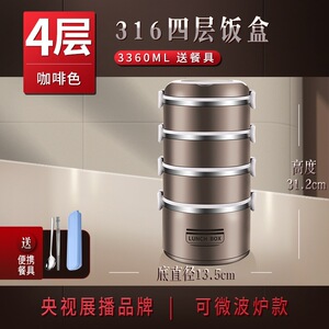 316四层-咖啡色3360ML+(保温袋新老随机)【收藏加购送餐勺】
