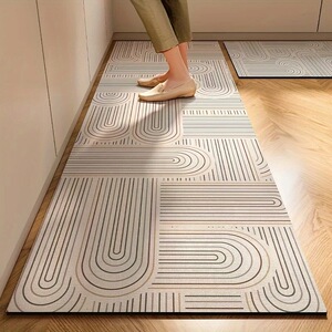 モダンでシンプルなラインの珪藻泥バスルーム滑り止め吸収性フロアマット、家庭用キッチン用、汚れにくく、耐摩耗性でお手入れが簡単なフットマット