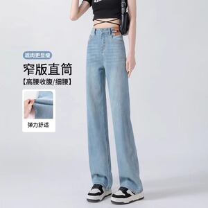 女性用ストレートジーンズ夏薄手2025新作人気スタイル小柄ハイウエストスリムドレープナローバージョンワイドレッグパンツ