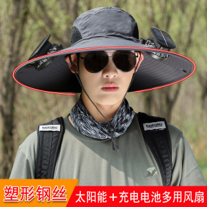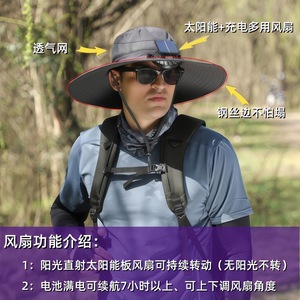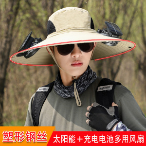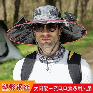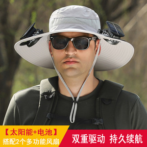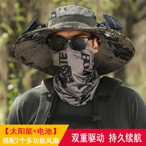 ソーラーファンハットメンズ夏の屋外登山釣り抗紫外線サンシェード防水多機能漁師帽子