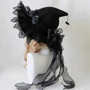 手作暗黑恶魔蝙蝠哥特洛丽塔蕾丝万圣节女巫帽魔女巫师帽头饰蕾丝