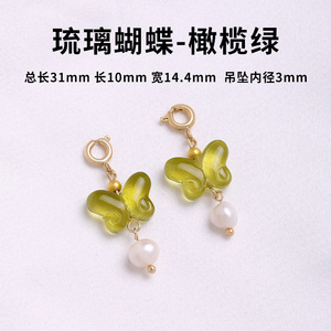 【スプリングパールスタイル】ガラスバタフライ-オリーブグリーン 1個