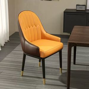 外国貿易輸出品質 - オレンジ色の表面 + コーヒー色の背面 - ブラックゴールドの脚 [高品質の革ლ炭素鋼の椅子の脚]⚑✦