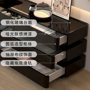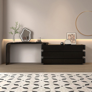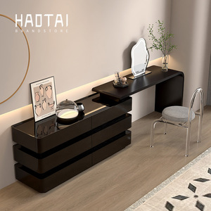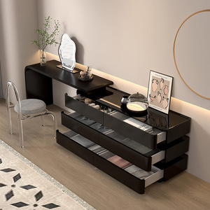全实木黑色烤漆梳妆台斗柜一体意式极简中古风卧室床尾高级化妆桌