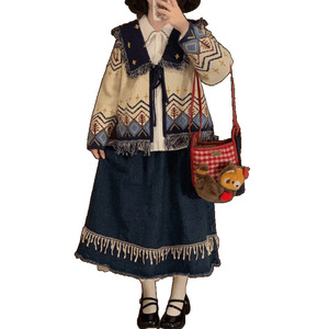 レトロで高級感のある雰囲気のフレンチレイジーセータージャケットのセットで、少し太った早春の服装にぴったりです。