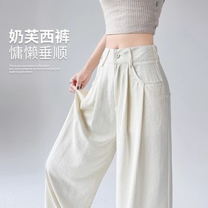 乳白スーツパンツ女性の夏薄い 2025 新しいハイエンドドレープルーズ怠惰なカジュアルストレートワイドレッグパンツ