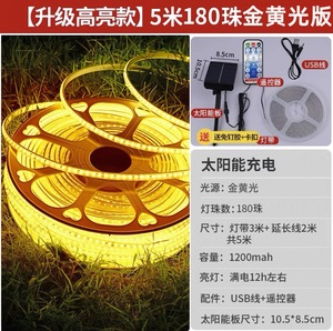 0电费★遥控经济款【5米含延长线2米】黄光180灯◆太阳能+USB两充