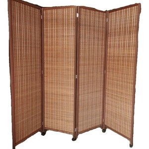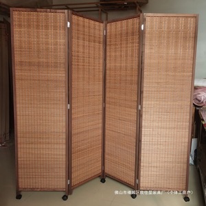 屏风隔断实木遮挡玄关复古中式可移动滑轮客厅卧室简易折叠竹编帘