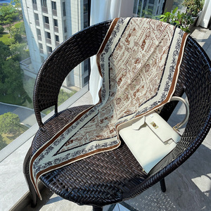 真丝羊毛菱形巾 卡其小马车护脖小围巾时尚个性领巾手工卷边轻奢