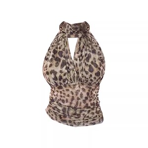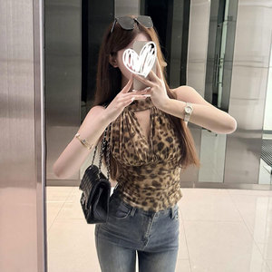 YIDENG2025夏季新款豹纹镂空挂脖吊带背心女外穿设计感洋气收腰
