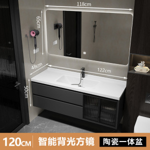 120cm アイアングレー スマート収納ミラーキャビネット 一体型セラミック洗面器