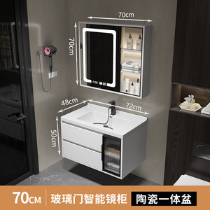 70cm アイアングレーガラスドアスマートミラーキャビネット一体型セラミック洗面器
