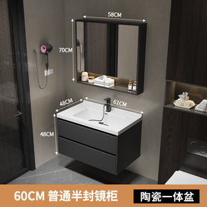 60cm アイアングレー普通収納ミラーキャビネット一体型セラミック洗面器