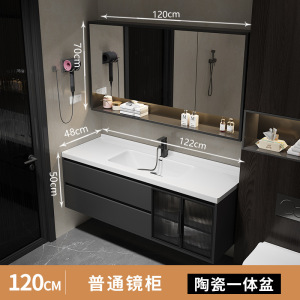 120cm アイアングレー普通収納ミラーキャビネット一体型セラミック洗面器
