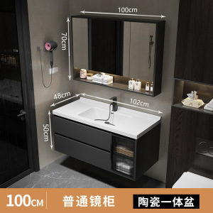 100cm アイアングレー普通収納ミラーキャビネット一体型セラミック洗面器