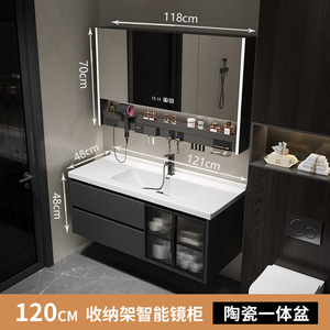 120cm アイアングレーのアップグレードされた収納ラックスマートミラーキャビネット一体型セラミック洗面器