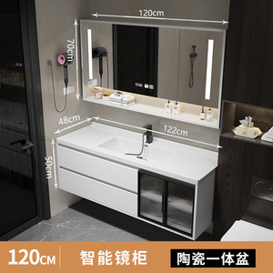 新しいモダンでシンプルなスマートバスルームキャビネット組み合わせ木製バスルームセラミック一体型洗面台手洗い洗面台