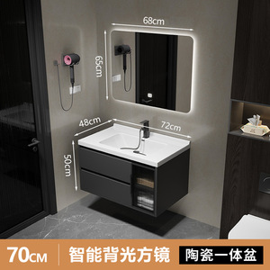 70cm アイアングレー アップグレードされた収納ラック スマートミラーキャビネット 一体型セラミック洗面器