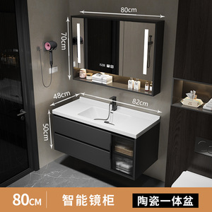 80cm アイアングレー アップグレードされた収納ラック スマートミラーキャビネット 一体型セラミック洗面器