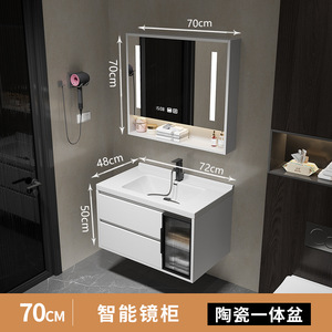 70cm ホワイトスマート収納ミラーキャビネット一体型セラミック洗面器