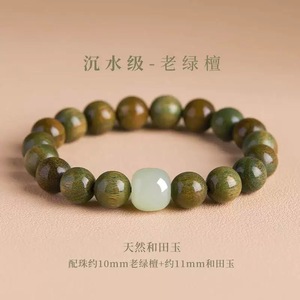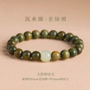 卸売ミルキーグリーンサンダルウッドブレスレットメンズロザリオプレートサンダルウッドブレスレット沈香プレートビーズ瞑想仏ビーズ木製