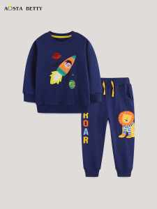 AostaBetty 子供スーツ秋の新作男の子ズボンスーツファッション動物刺繍ラウンドネックスウェットシャツ