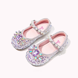 漫画ファッションラインストーンスパンコール女の子の靴 2025 夏の新浅い口子供のプリンセスシューズベビークリスタルシューズ