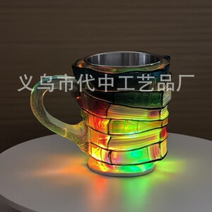 手描きのブックカップ 3D ペイントブック コーヒーカップ ギターカップ ノームひげカップ スプーンとカラフルなライト付き