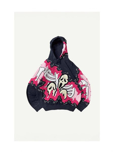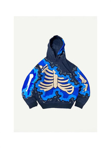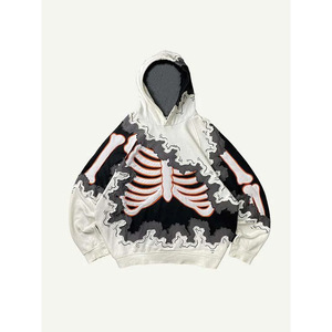 2025 新しいクロスボーダーアメリカンレトロスカルスケルトンシリーズ 3D デジタル印刷トレンディなパーカースウェットシャツ