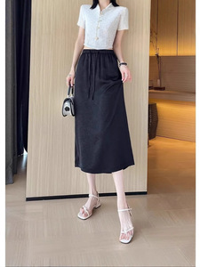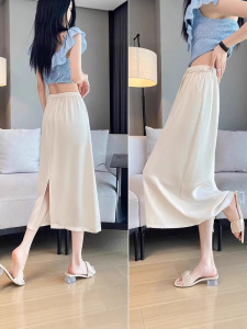提花缎面冰丝半身裙女夏季薄款高腰显瘦中长款垂感醋酸开叉包臀裙