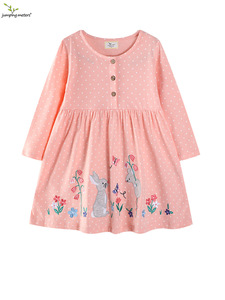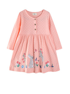 ヨーロッパとアメリカンスタイルの新製品 2025 春刺繍恐竜女の子長袖ドレス子供の春と秋の子供ドレス