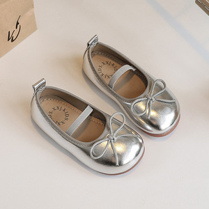 女の子の革靴 2025 春と秋の新シルバー靴小さな女の子プリンセスシューズソフトソールビーニーシューズレッドシングルシューズトレンディ