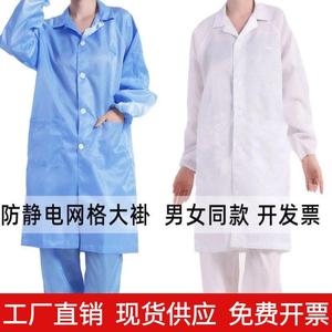 帯電防止作業服フード付きメッシュコート男性と女性のためのロング電子食品工場ワークショップ青と白の清潔で防塵の服
