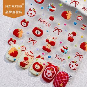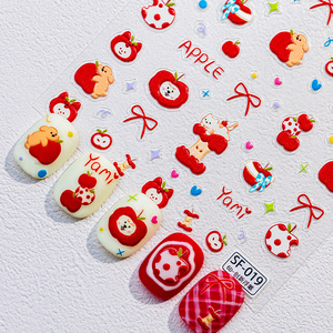スカイかわいい赤いリンゴ子犬エンボスネイルアート立体ステッカー漫画弓愛粘着 diy カメラ