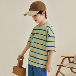 【Tシャツコレクション】Duojia シンプルで快適な子供服 夏ファッション 肌に優しい半袖中大型子供用ストライプトップス