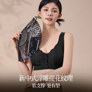 生放送人気の中国風レリーフジャカードブラジャーポータブルフロントボタンプッシュアップ胸縮小シームレス大きいサイズ下着