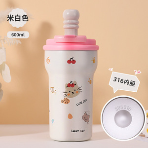 高見えインニッチガールフラワーティーカップ新しい魔法瓶カップ316スプレーテラミン魔法瓶カップポータブルストローカップ