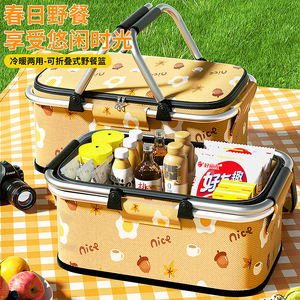 ピクニックバスケット、ピクニック、屋外ピクニック、断熱キャンプ、折りたたみ式厚みのあるポータブルバスケット、ピクニックインターネットセレブ収納バスケット