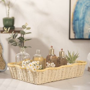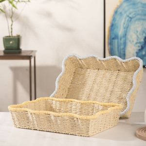 手織り紙ロープ収納バスケット模造籐家庭用収納バスケットリビングルームスナックトレイデスクトップ雑貨収納バスケット