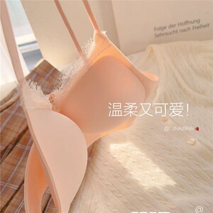 細いショルダーストラップ、コミックバスト拡張、快適なレースのシームレスな下着、小さな胸の女性用プッシュアップ夏用ノンワイヤーブラジャー