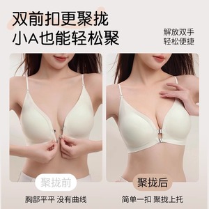 女性用ダブルフロントボタン下着、小さな胸のプッシュアップ、たるみ防止、クロスホルターネック、美しいバック、スパゲッティストラップ、目に見えないシームレスブラ