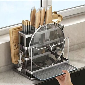 刀架厨房置物架菜刀多功能菜板筷子锅盖砧板一体壁挂刀具沥水收纳