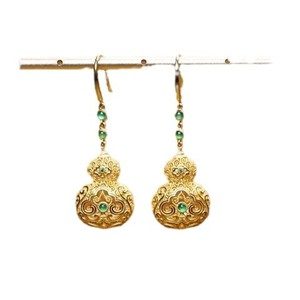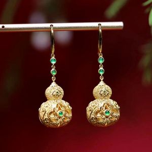 オリジナルスターリングシルバー古代ゴールド象嵌ひょうたんイヤリングペンダント中空サシェセットイヤリングペンダント女性用