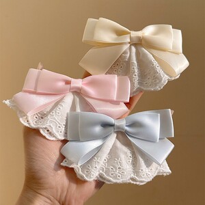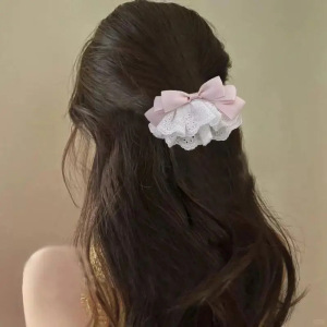 夏日云朵~蓝色蝴蝶结蕾丝发夹女侧边发卡甜美夹子头饰洛丽塔发饰